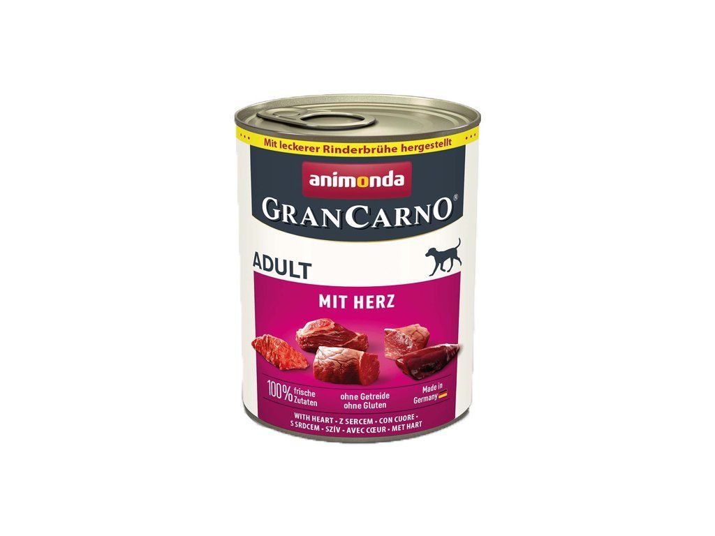 Animonda GranCarno Adult - so srdiečkami predstavuje vyváženú, chutnú a zdravú výživu na najvyššej úrovni pre dospelých psov vo veku od 1 do 6 rokov. Vybrané, čerstvé, mäsité suroviny zaručujú neporovnateľnú chuť, ktorú psy tak veľmi milujú.